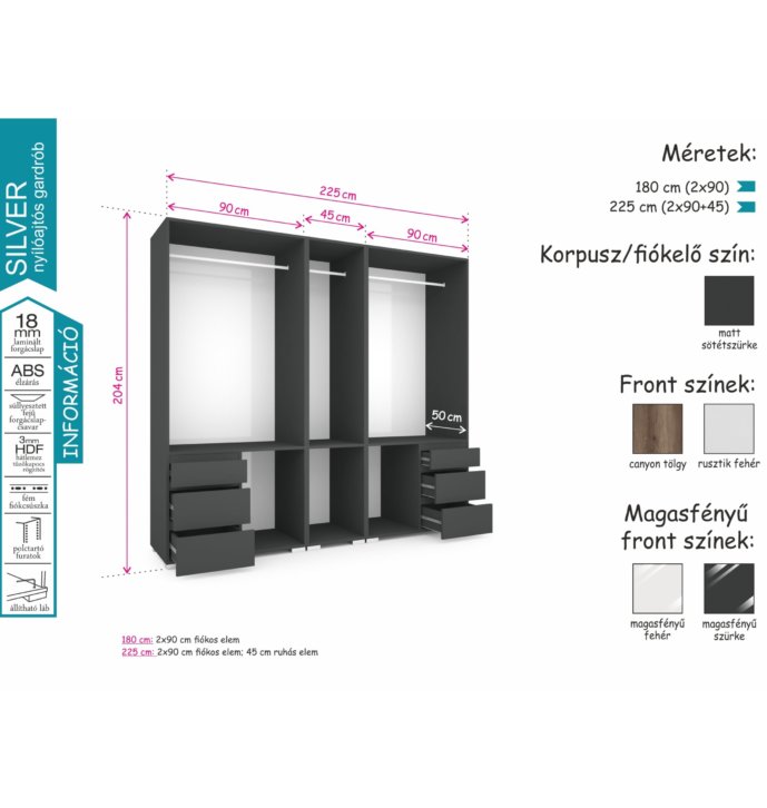 Silver gardrób / Magasfényű szürke