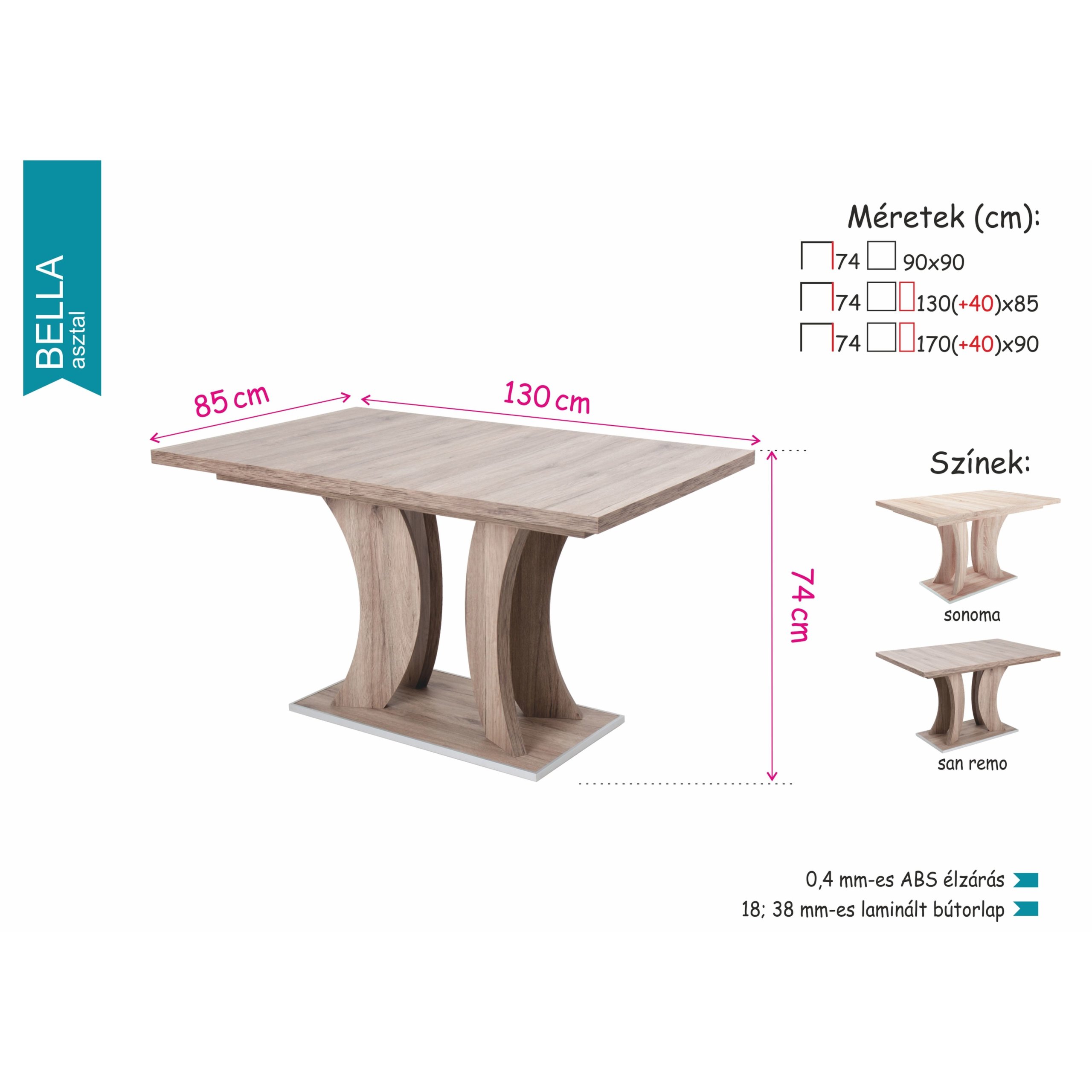 csak a feltüntetett variációkból, illetve kombinációból van lehetőség a választásra.