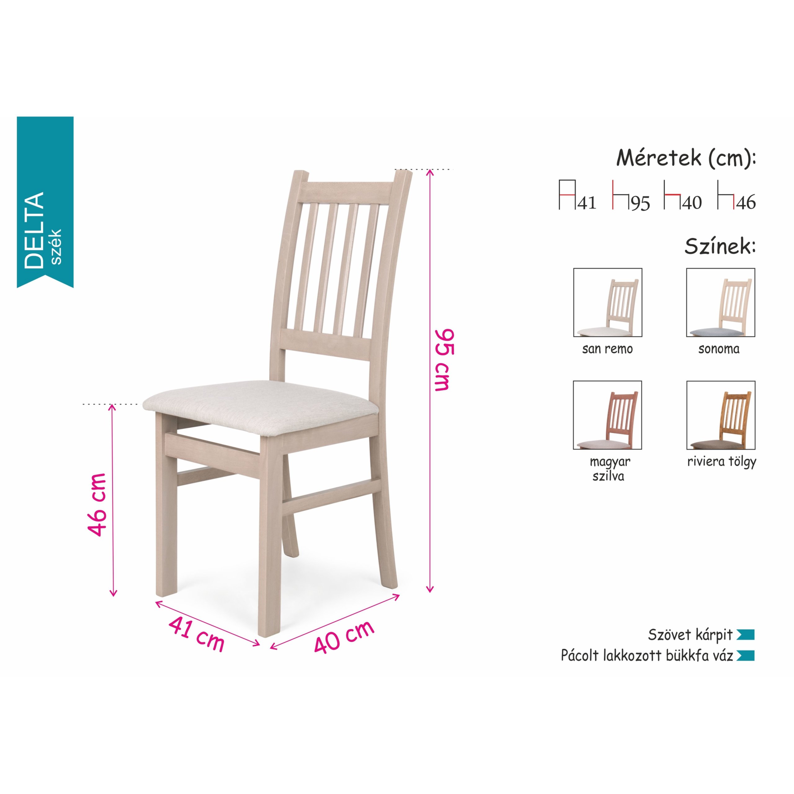 Delta szék magyarszilva szövet, Delta szék riviéra tölgy szövet, Delta szék san remo szövet, Delta szék sonoma szövet