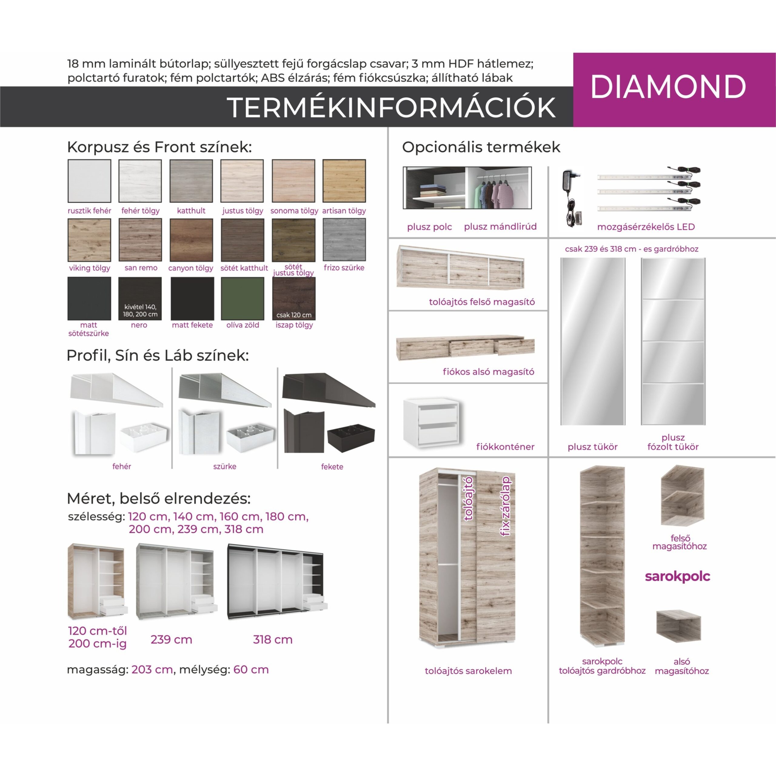 Diamond tolóajtós gardrób 120cm