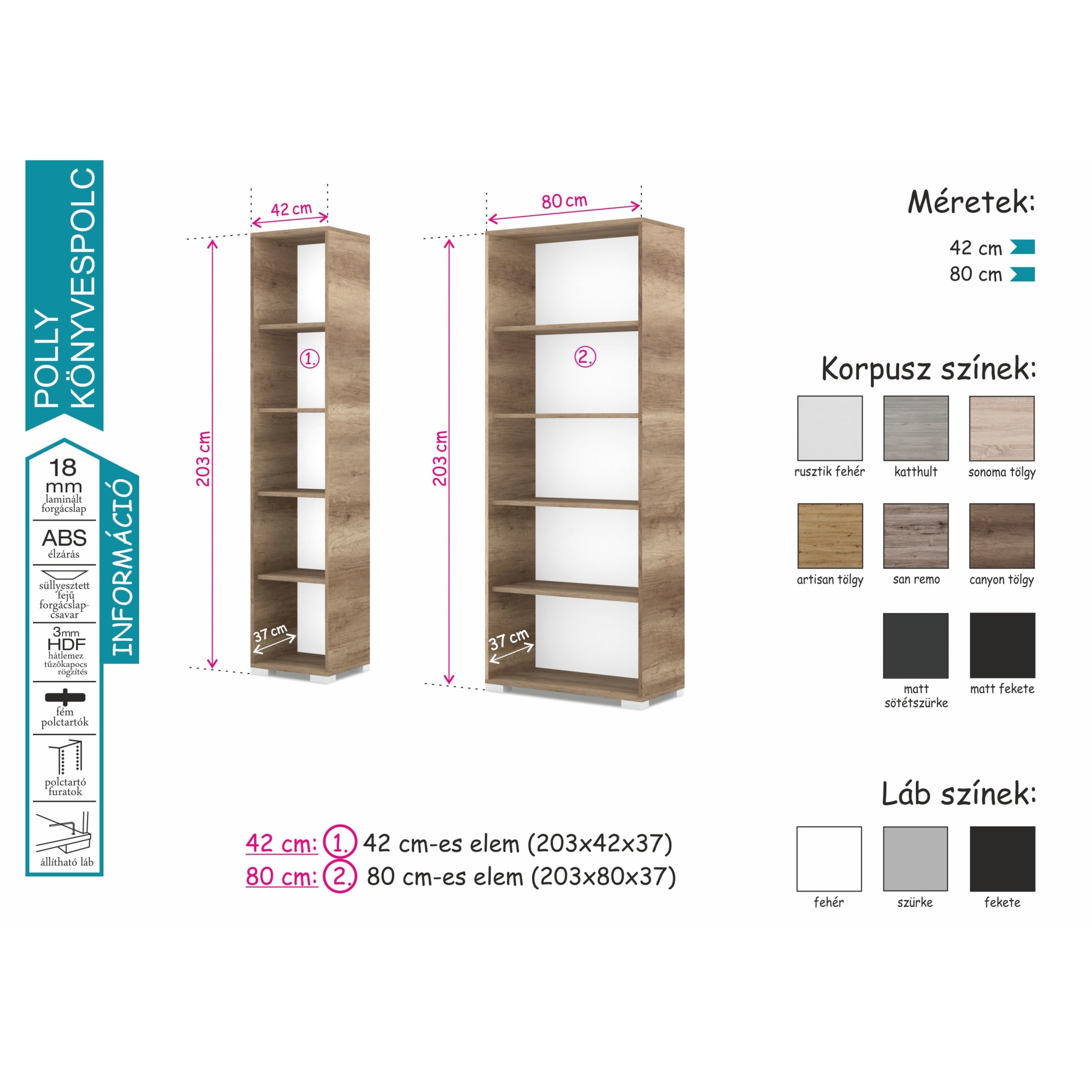 Polly Könyvespolc 42 cm