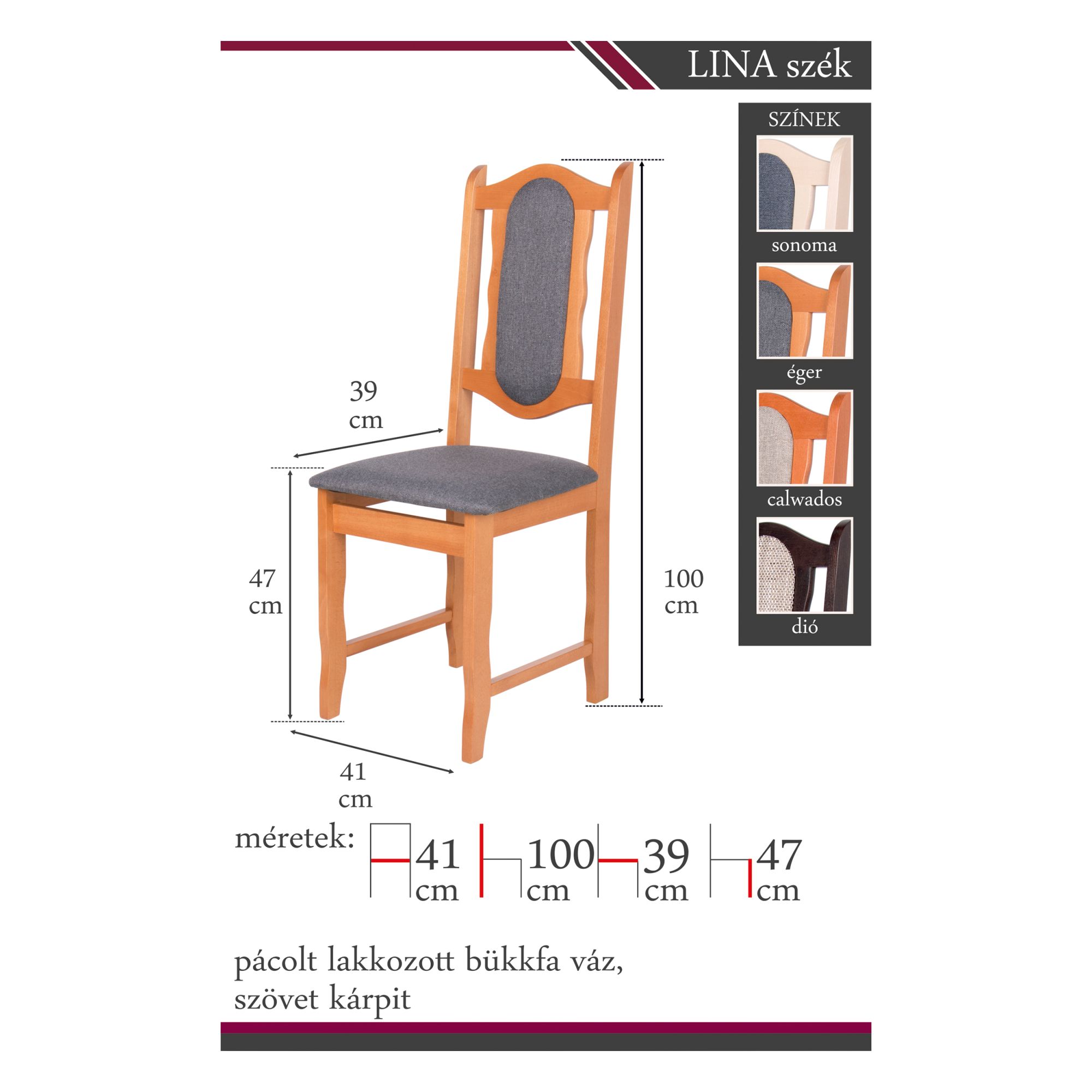 Léna szék sötét dió szövet, Lina szék calwados szövet, Lina szék éger szövet, Lina szék sonoma szövet