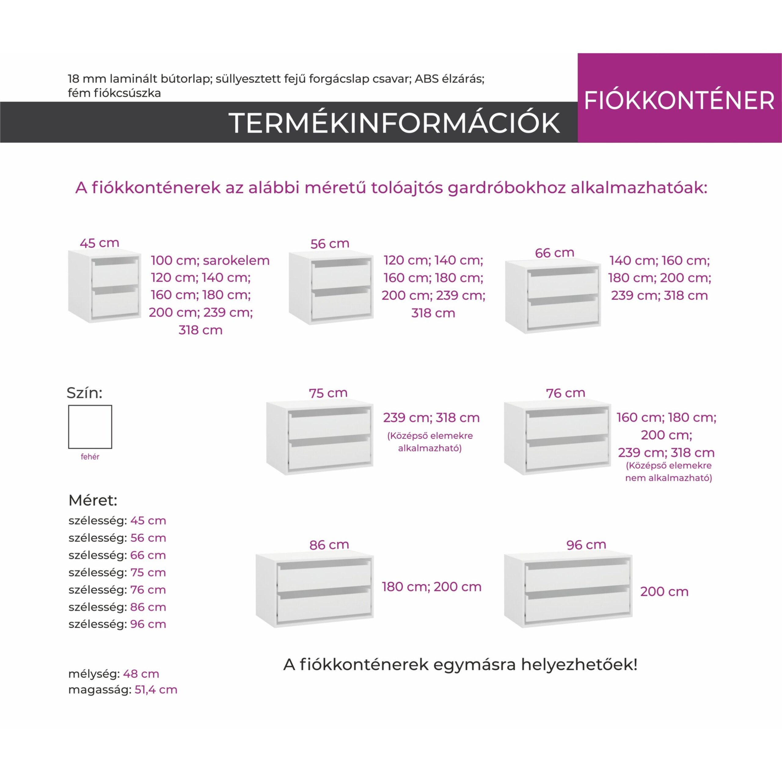 • alsó (fiókos), és felső (tolóajtós) magasító kérhető hozzá