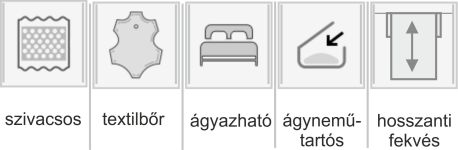 | Típus | 2-es kanapé, 3-as kanapé, 3+1+1 garnitúra, 3+2+1 garnitúra, Fotel |